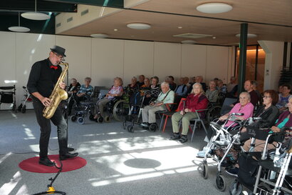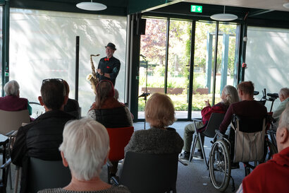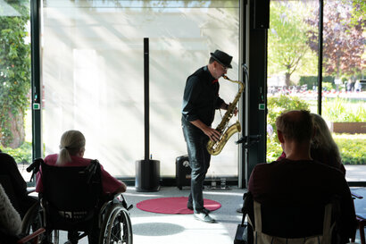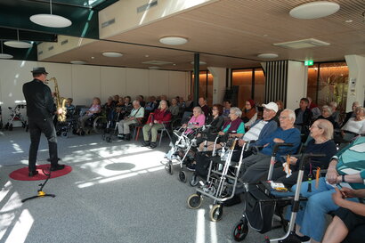 Reto Schäublin entführte unsere Bewohnenden auf eine stilvolle musikalischen Reise durch elf Länder - ganz ohne Kofferpacken, dafür mitten ins Herz. Dieses Erlebnis verknüpfte Musik und Emotionen auf eindrückliche Weise und weckte persönliche Erinnerungen.